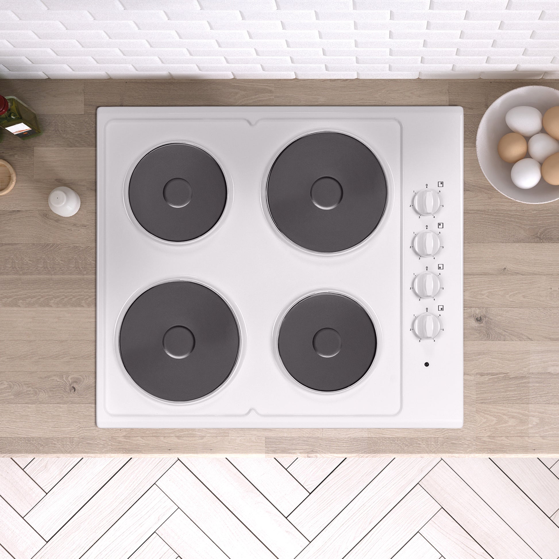 4 Plate Electric Hob Cooktop, Side Dial Control, 60cm, White