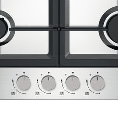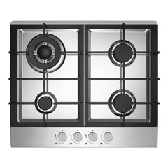 4 Zone Gas Glass Hob, Front Dial Control, Automatic Ignition, 60 cm, Stainless Steel