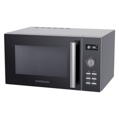 The Statesman 25 Litre Digital Combination Microwave combines traditional microwave functions with advanced features, fitting seamlessly into modern kitchens with a sleek black or silver design. It offers 10 auto cooking programs, a grill function, and 1950W convection power. Safety features include a child lock and automatic overheating protection. The stainless-steel cavity ensures efficient cooking.