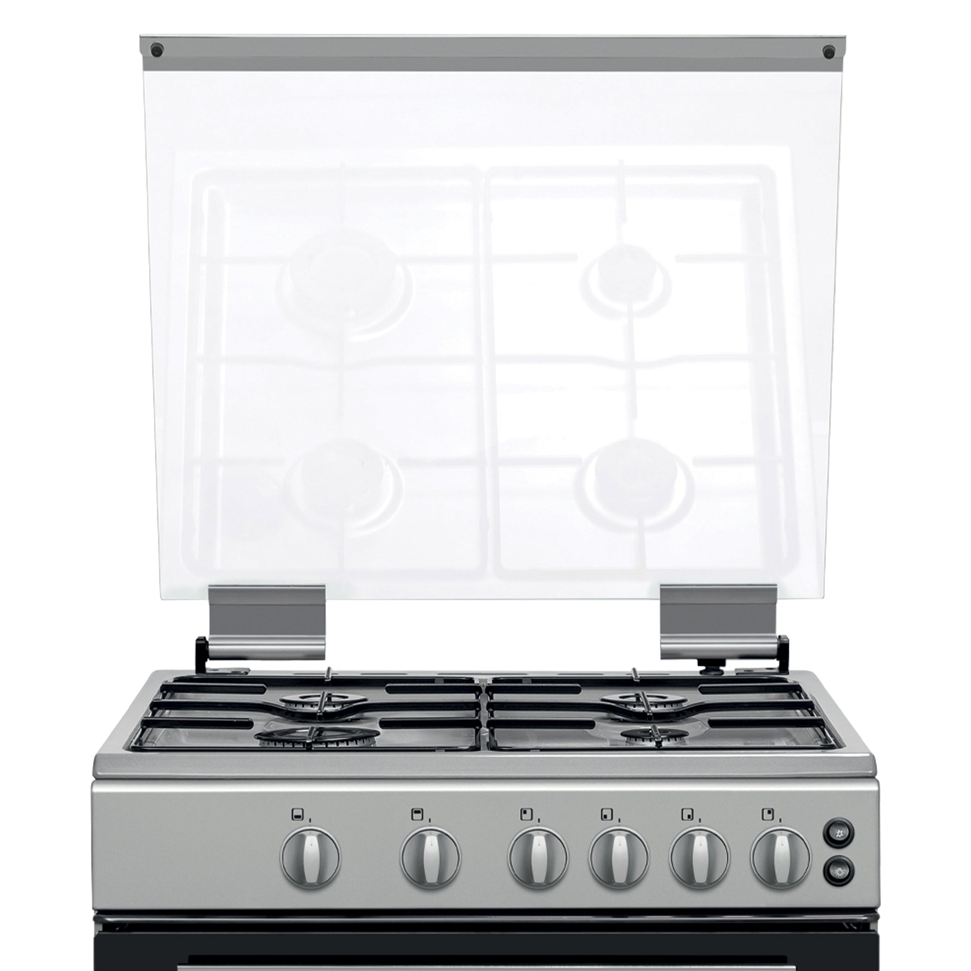 Glass Lid Double Oven Gas Cooker, 4 Gas Burners, 60cm Wide, Silver