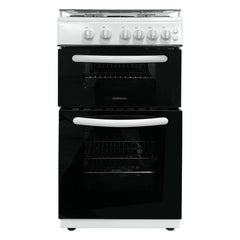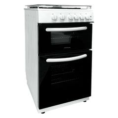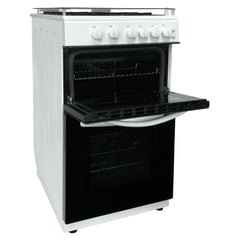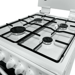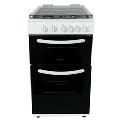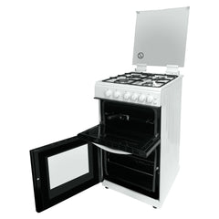 Glass Lid Twin Cavity Gas Cooker, 4 Gas Burners, 50cm Wide, White