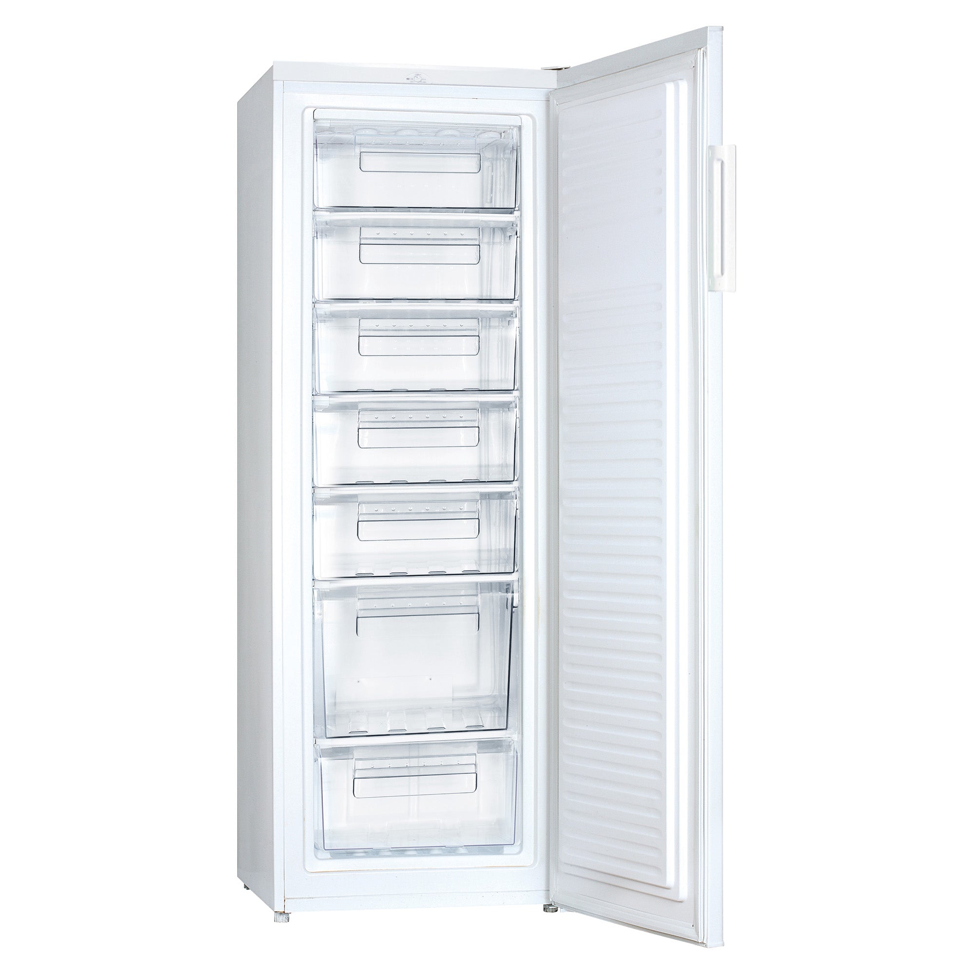 Introducing the White Statesman Free-standing Freezer TF170LW, an A+ energy-rated appliance with a spacious 225 litres net capacity. Measuring 60 cm (W) x 170 cm (H) x 60 cm (D) and operating at a quiet 42 dB, it features seven drawers, adjustable temperature settings, reversible door hinges, and a 2-year warranty for peace of mind. Perfect for all your freezing needs!