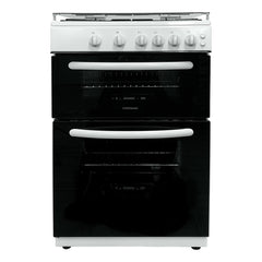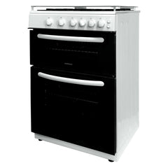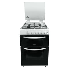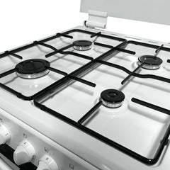 Glass Lid Twin Cavity Gas Cooker, 4 Gas Burners, 60cm Wide, White