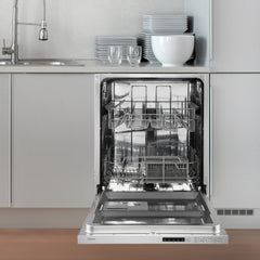 The Statesman BDW6014 60 cm Integrated Dishwasher offers exceptional convenience with 14 place settings, making it perfect for busy households. Its thoughtful design features a salt funnel, rear fordable racks, and a removable cutlery basket for easy loading. Plus, the height-adjustable upper basket ensures maximum flexibility for your dish washing needs.
