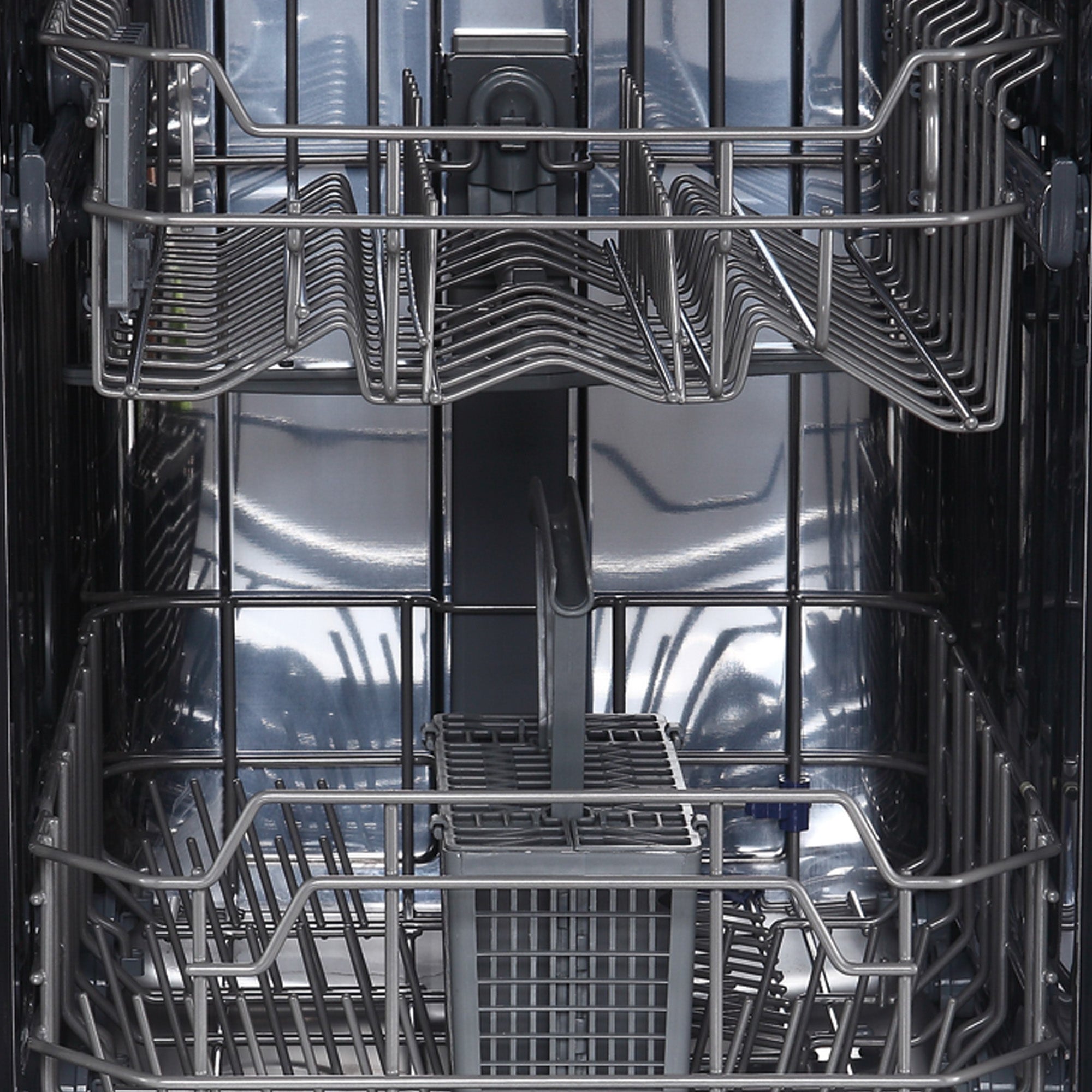 The Statesman BDW4509 60 cm Integrated Slimline Dishwasher combines advanced features with sleek design to enhance your kitchen. With a capacity of 9 place settings, it offers ample space for your dishes while maintaining a compact, space-saving profile. Thoughtfully designed, it includes a convenient salt funnel, rear foldable racks, a removable cutlery basket, and a height-adjustable upper basket, making it easy to accommodate various dish sizes. Perfect for modern kitchens, this dishwasher delivers exceptional performance and flexibility for effortless cleaning.